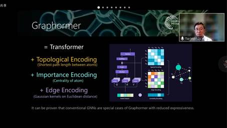 报告最后,刘铁岩教授对AI for Science在未来的发展进行了讨论,并对同学们提出的问题进行了耐心解答。他指出AI for Science的发展需要AI的专业与其他科学的专业领域深入交叉,而针对AI for Science设计专门的AI框架则是其中富有挑战性的技术难题。林宙辰教授对刘铁岩教授分享的精彩报告做了总结与感谢,本次交流报告分享活动至此圆满结束。
