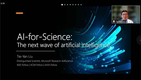 2022年12月22日,微软杰出首席科学家、微软亚洲研究院副院长、微软研究院科学智能中心亚洲区负责人刘铁岩教授通过线上形式为“北京大学智能科学前沿论坛”带来了一场精彩的报告,报告题目为“AI for Science: 科学发现的第五范式”,吸引了包括智能学院、人工智能研究院、王选计算机研究所和计算机学院等众多老师和同学的参与。