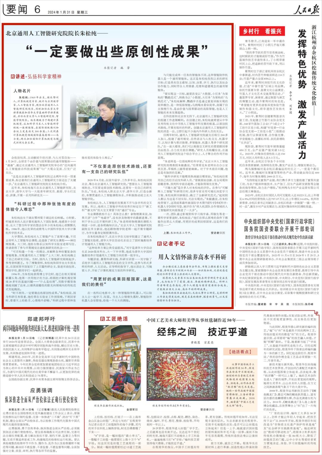 “不随大流”是许多人对朱松纯的评价。在参与“可解释人工智能”科研项目时,很多专家采用可视化深度学习方案,朱松纯则另辟蹊径,确立了全新研究范式。“起初别人都认为这是不切实际、无法实现的。”朱毅鑫说,在朱松纯带领下,这项成果最终被国际学术期刊《科学》和《科学·机器人学》同时刊登,被评价为“将人机团队合作领域的人工智能研究向前推进了一大步”。
