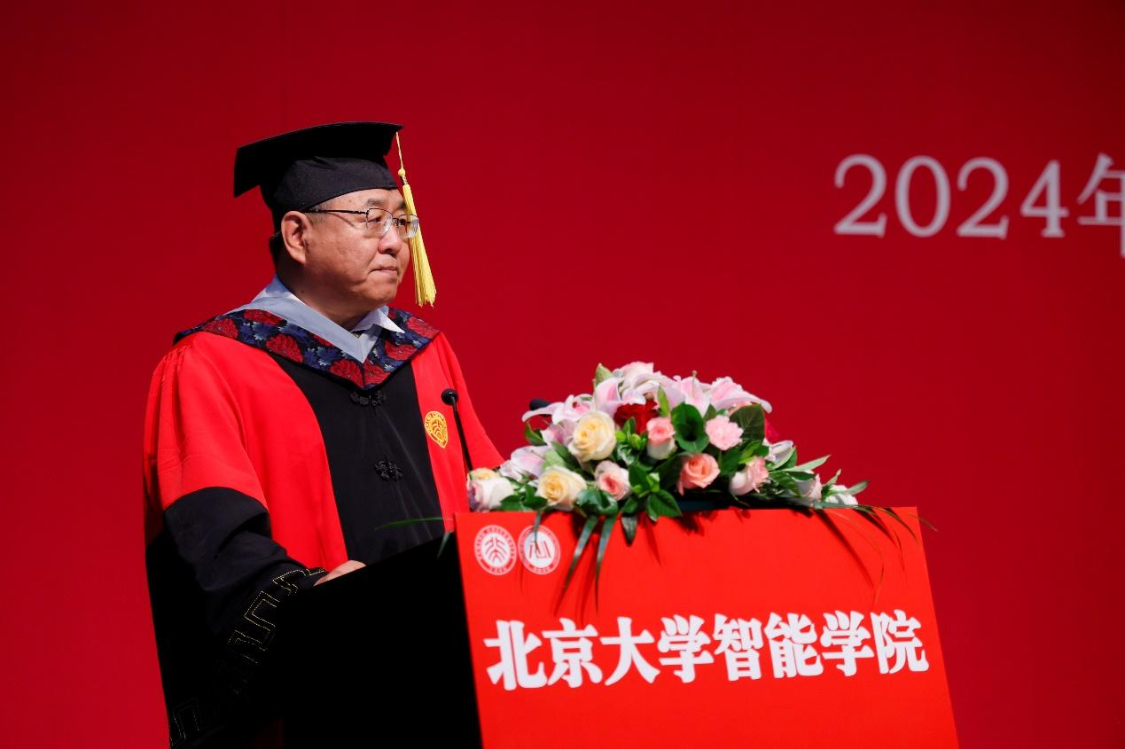 吴玺宏宣读《北京大学智能学院2024届优秀毕业生表彰决定》。朱松纯、吴玺宏、罗定生、林宙辰等老师共同为优秀毕业生颁奖。